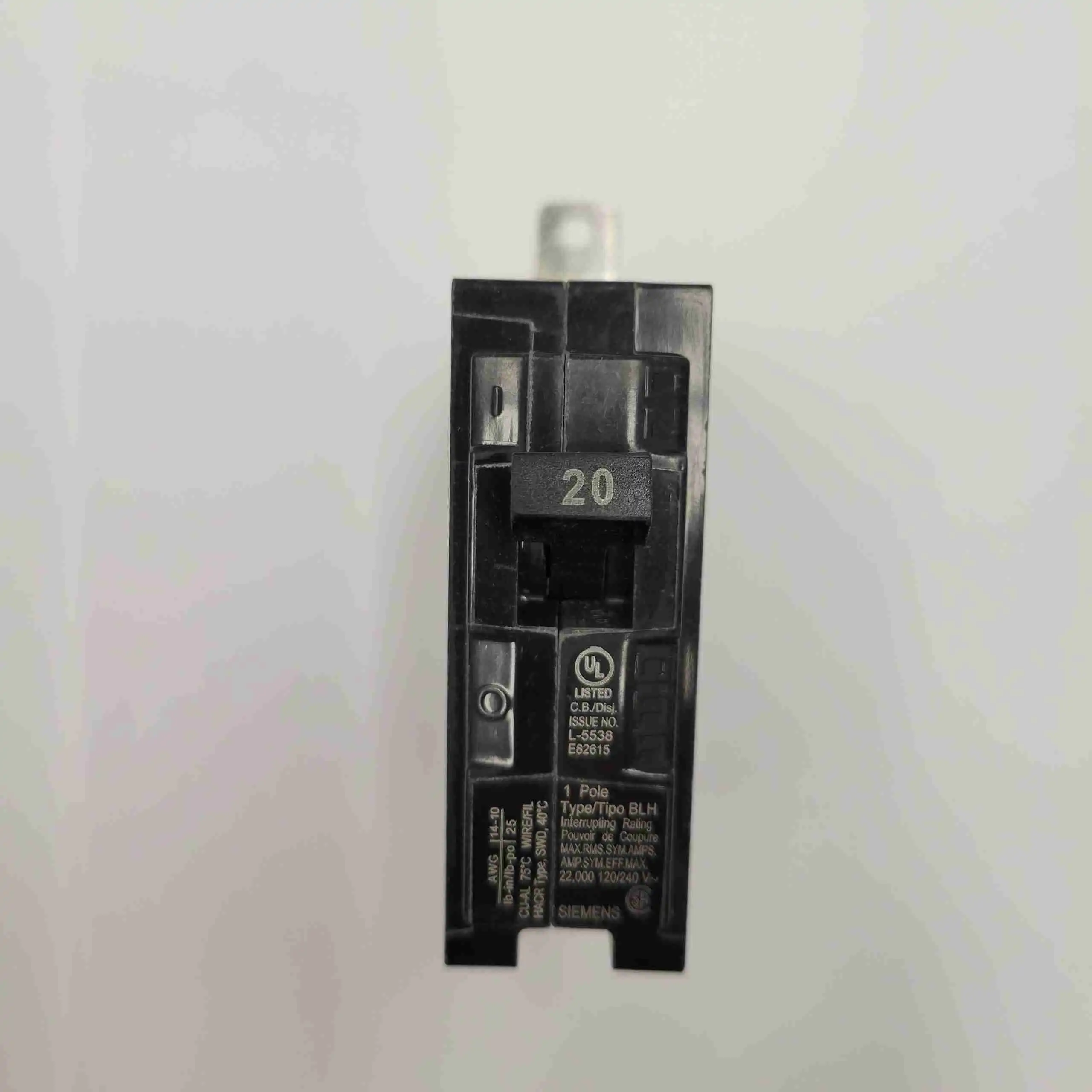 B120H – SIEMENS 1P20A 120V BOLT ON 22kA BREAKER