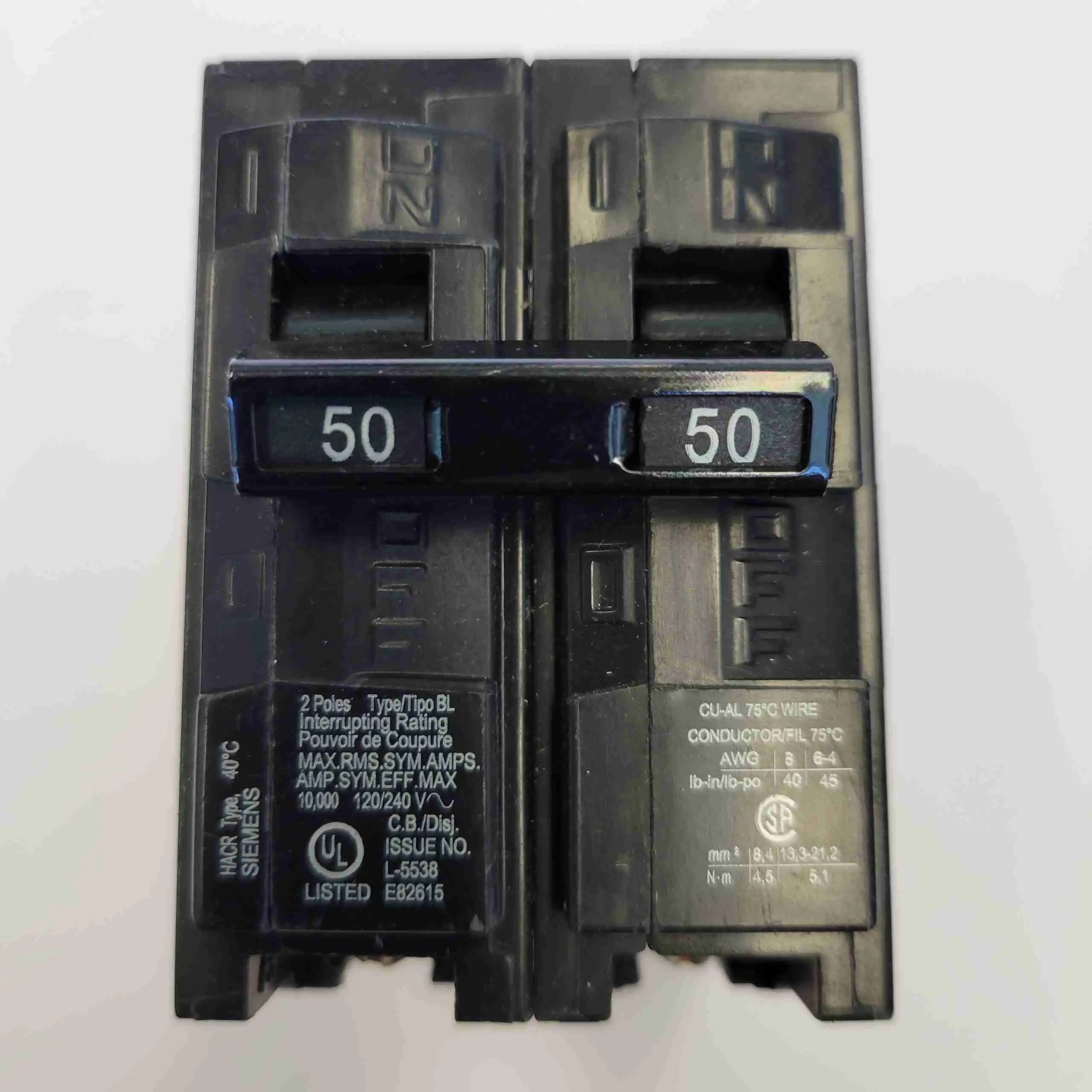B250– SIEMENS (BL) 2P 50A 240V BOLT ON 10kA BREAKER