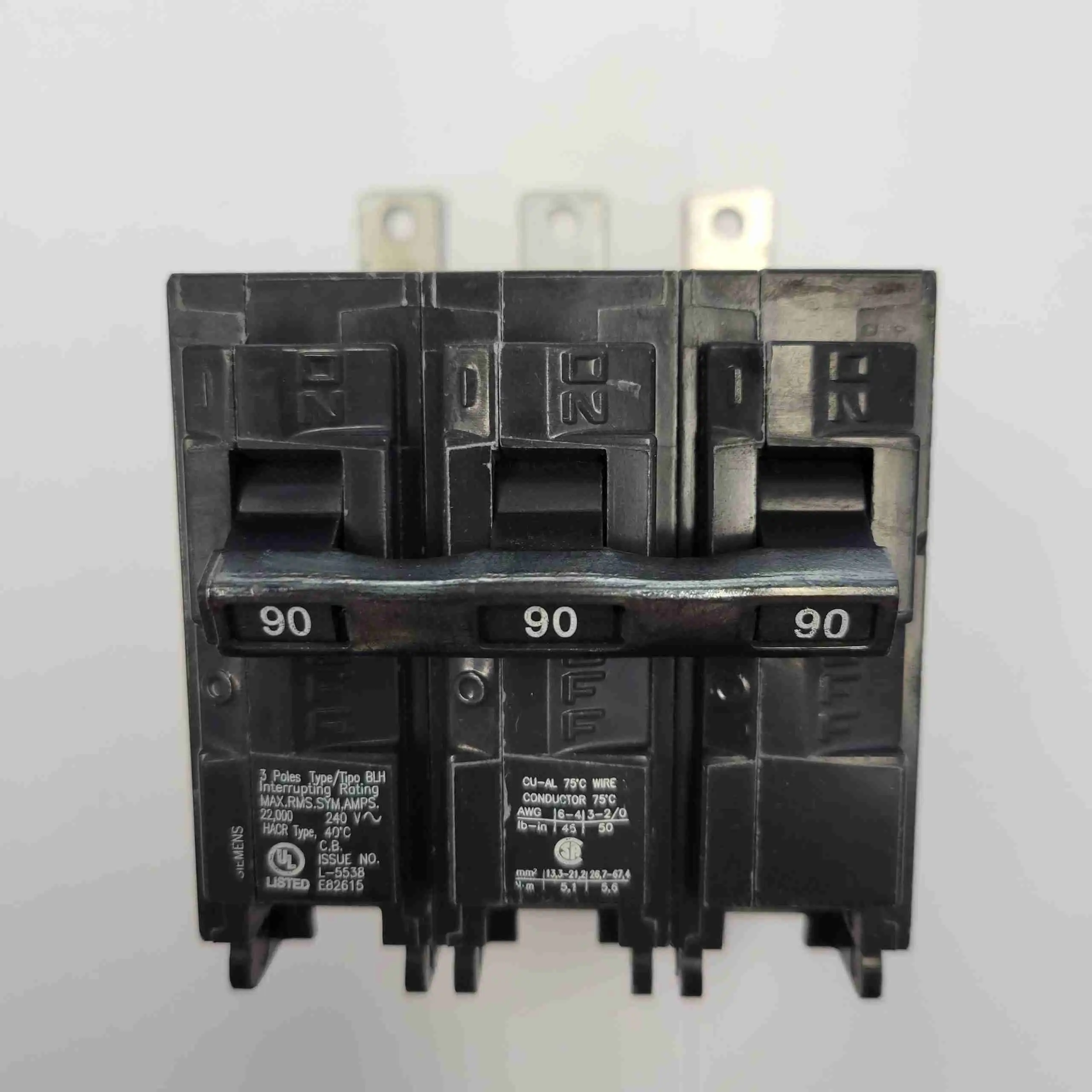 B390H – SIEMENS 3P90A 240V BOLT ON 22kA BREAKER