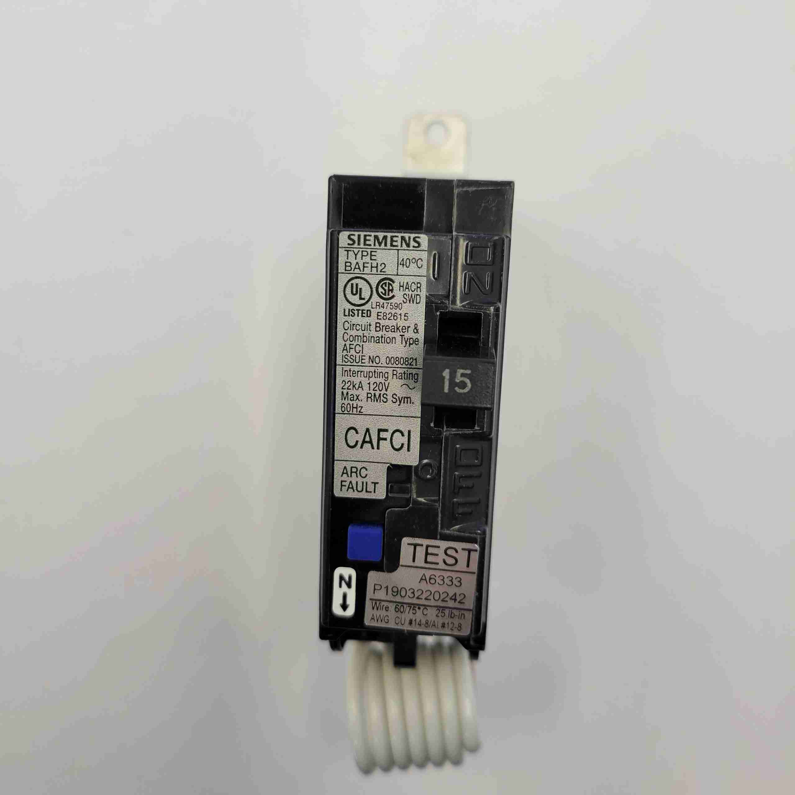 BA115AFCH – SIEMENS 1P15A 120V DUAL FUNCTION ARC FAULT BOLT IN 22kA BREAKER