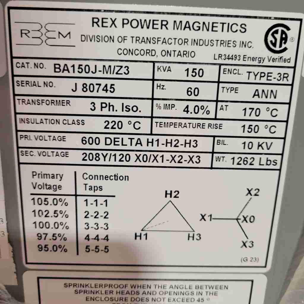 BC75B-Q/Z REX 75KVA 208-600/347V 3PH TRANSFORMER