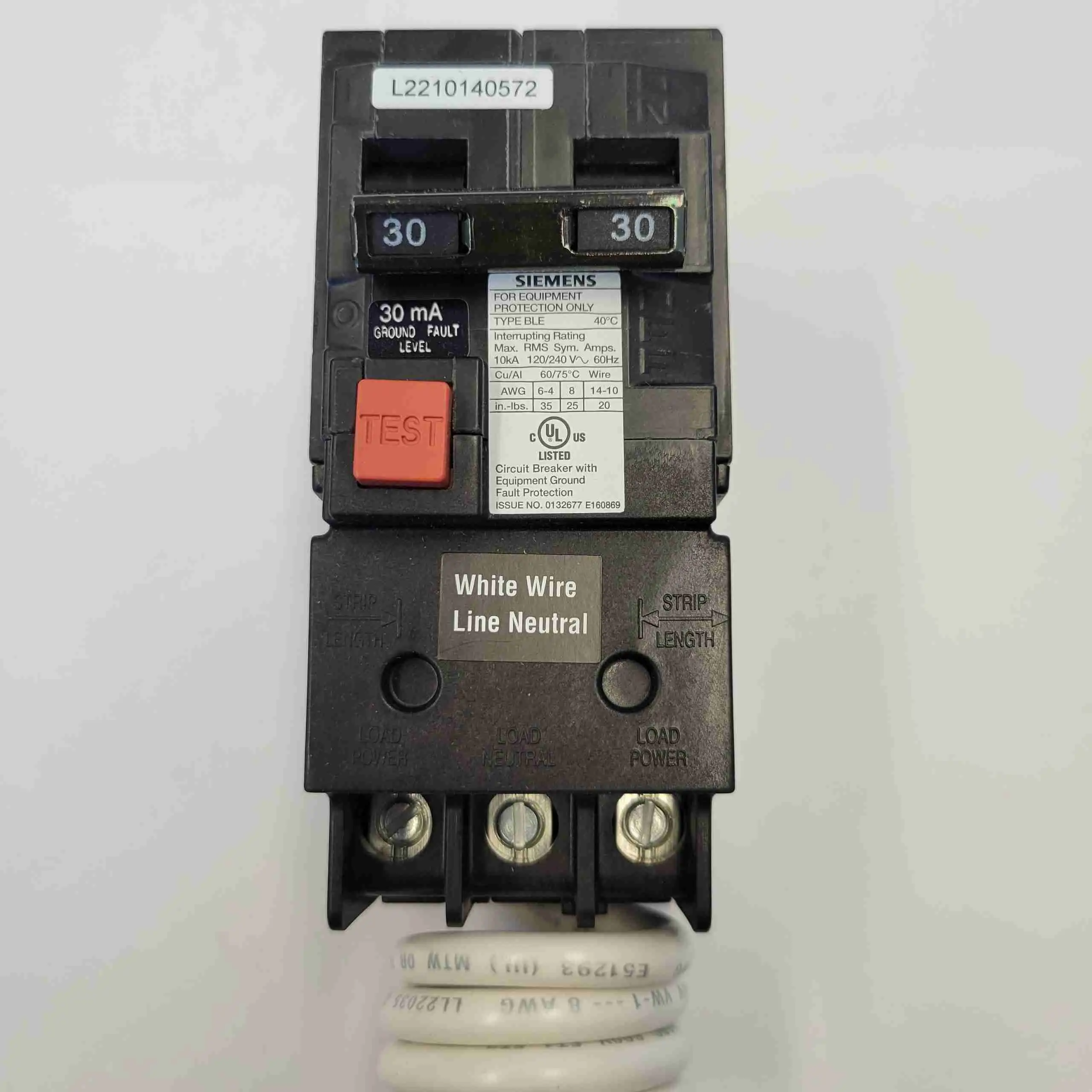 BE230– SIEMENS 2P30A 240V BOLT ON GFCI 30mA 10kA BREAKER