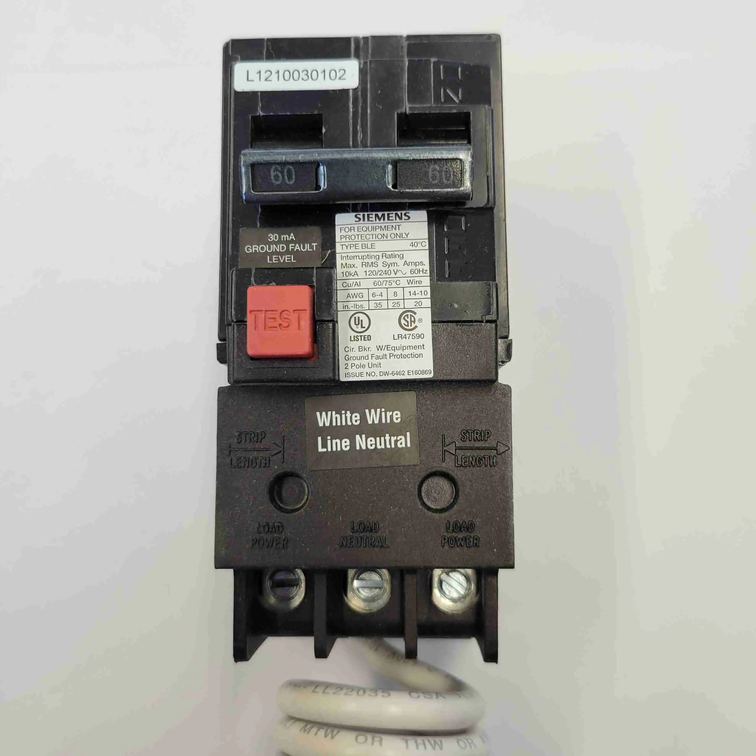 BE260– SIEMENS 2P60A 240V BOLT ON GFCI 30mA 10kA BREAKER