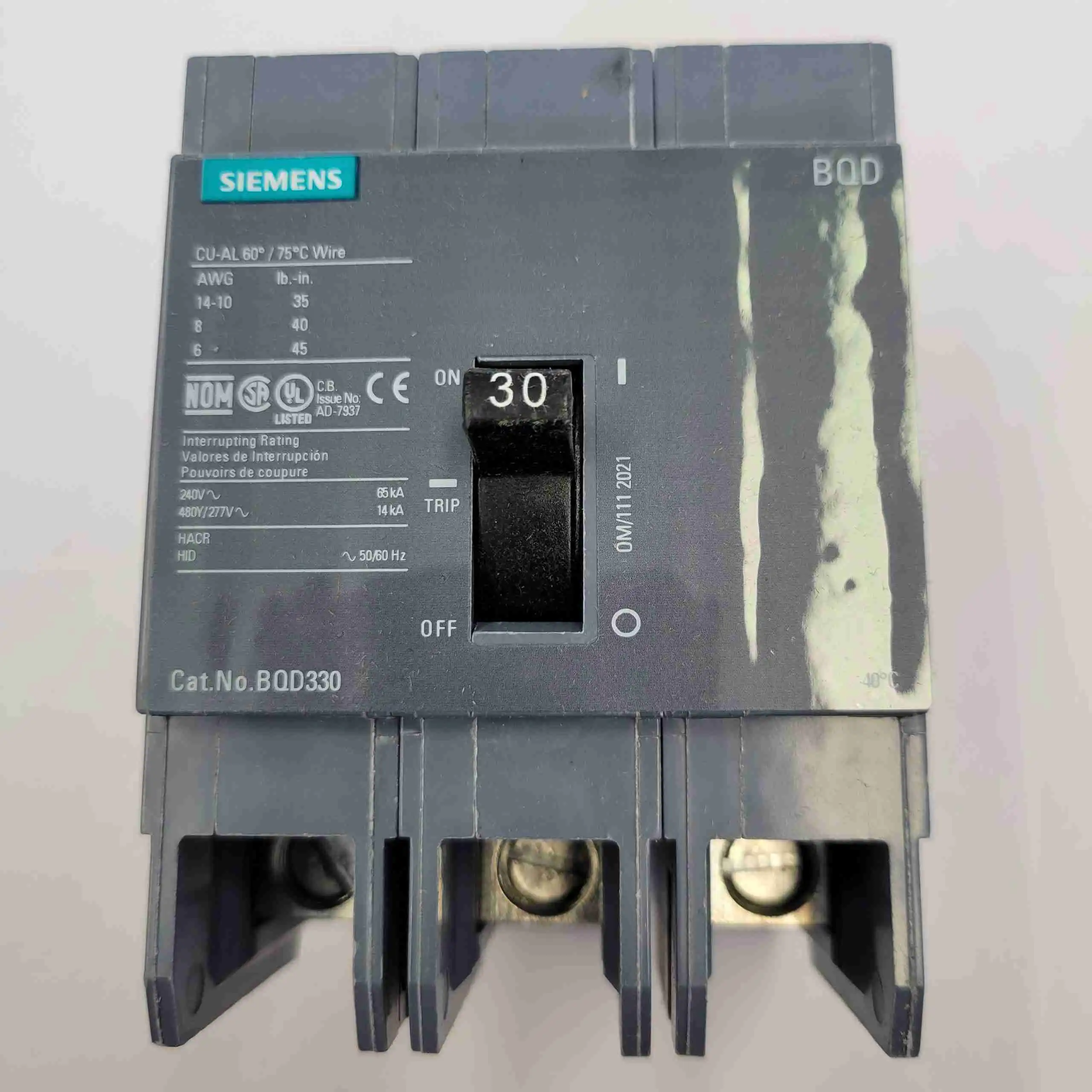 The BQD330 is a Siemens 3P30A bolt-on circuit breaker, designed for 480V applications. With a robust interrupting capacity of 14kA, this breaker ensures reliable performance and maximum safety in various industrial settings. Perfect for protecting your electrical equipment and circuits, it offers both durability and efficiency for your operational needs.