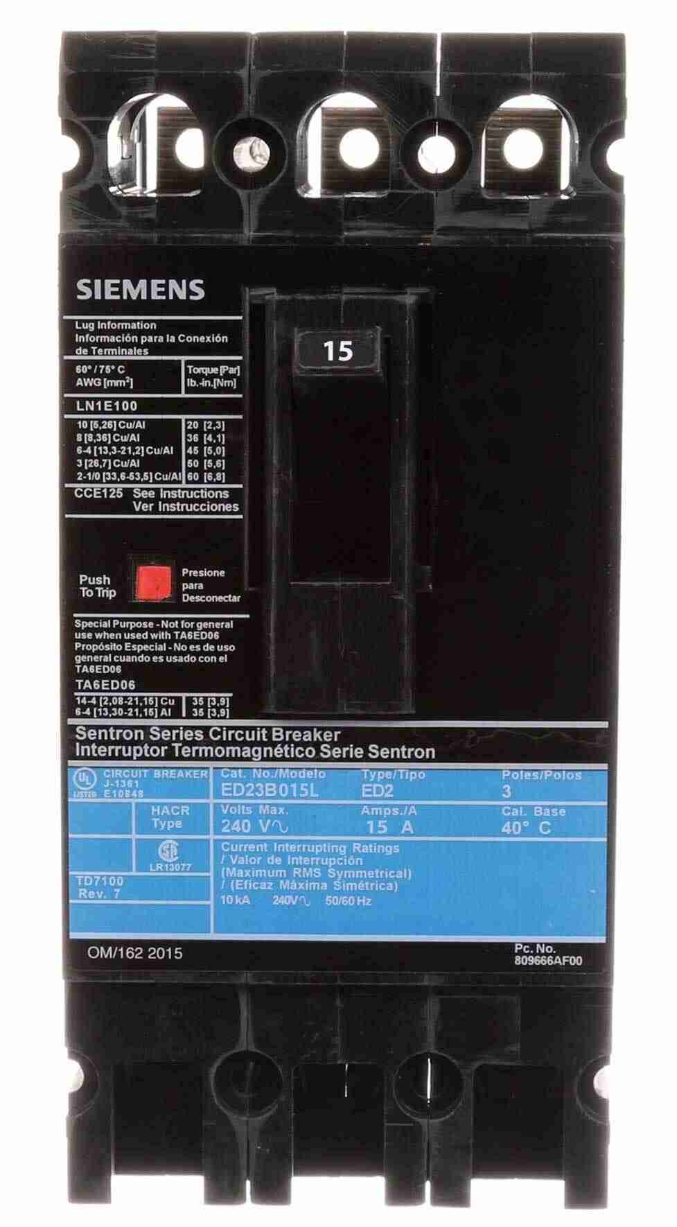 The ED23B040 is a Siemens 3-Pole 40 Amp, 240V Bolt-On Circuit Breaker designed for reliable performance in various electrical applications. With a 10kA short circuit current rating, it ensures optimal protection for your systems. Ideal for residential or commercial use, this breaker combines durability with ease of installation. Perfect for your next project!